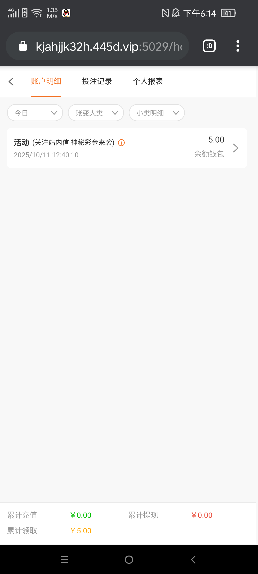 注册绑定,系统一两天自动派送的,我没充值过,刚刚上号看到有5块,出款自测!